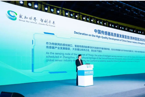 開(kāi)幕式現(xiàn)場(chǎng),《中國(guó)傳感器高質(zhì)量發(fā)展宣言(鄭州宣言2025)》(以下簡(jiǎn)稱《鄭州宣言2025》)面向全球發(fā)布。鄭州借助此次機(jī)會(huì),向社會(huì)各界提出“以創(chuàng)新為核心,突破產(chǎn)業(yè)發(fā)展瓶頸;以應(yīng)用為動(dòng)力,推動(dòng)產(chǎn)品融入下游;以協(xié)同為路徑,構(gòu)建開(kāi)放產(chǎn)業(yè)生態(tài);以綠色為脈絡(luò),踐行持續(xù)發(fā)展理念;以教育為基礎(chǔ),保障產(chǎn)業(yè)人才需求”等倡議,進(jìn)一步鞏固“中國(guó)智能傳感谷”地位,為全球傳感器產(chǎn)業(yè)發(fā)展凝聚共識(shí)、匯聚力量。