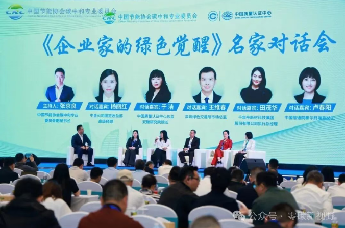 大會還設置了“《企業(yè)家的綠色覺醒》名家對話會”與“零碳:爭分奪秒閃電路演”環(huán)節(jié)。該環(huán)節(jié)由中國節(jié)能協(xié)會碳中和專業(yè)委員會副秘書長張京良主持,邀請中金公司董事總經理潘偉、中國質量認證中心總監(jiān)及雙碳研究院院長于潔、深圳綠色交易所市場總監(jiān)王維春、千年舟新材料技集團股份有限公司執(zhí)行總經理田茂華、海南深藍先河科技有限公司董事長姚鑫、中國信通院泰爾終端副總工盧春陽等多位嘉賓,圍繞企業(yè)家精神、綠色金融工具、市場機制創(chuàng)新、產業(yè)轉型實踐等維度,深入探討了企業(yè)綠色轉型的內在驅動力與戰(zhàn)略實施路徑。