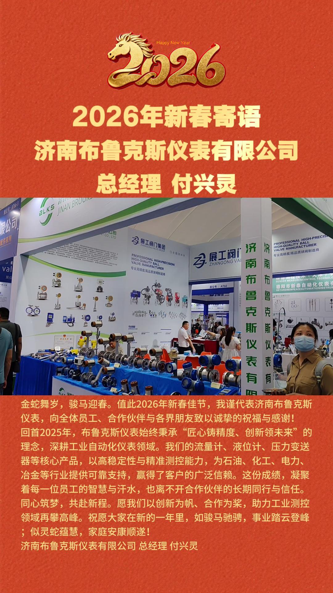 金蛇舞歲,駿馬迎春。值此2026年新春佳節(jié),我謹(jǐn)代表濟(jì)南布魯克斯儀表,向全體員工、合作伙伴與各界朋友致以誠(chéng)摯的祝福與感謝!