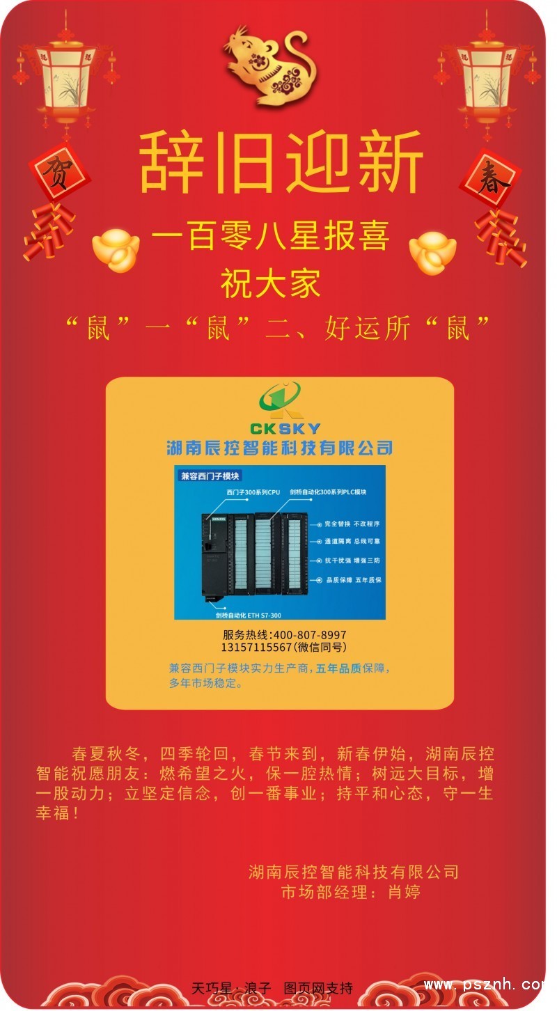 春夏秋冬,四季輪回,春節(jié)來(lái)到,新春伊始,湖南辰控智能祝愿朋友:燃希望之火,保一腔熱情;樹遠(yuǎn)大目標(biāo),增一股動(dòng)力;立堅(jiān)定信念,創(chuàng)一番事業(yè);持平和心態(tài),守一生幸福!