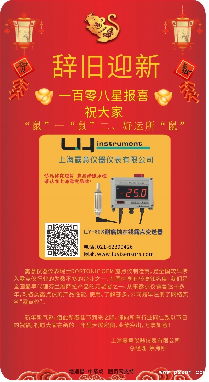 上海露意儀器儀表 總經(jīng)理 蔡海新2020新春寄語 一百零八星報喜之地速星