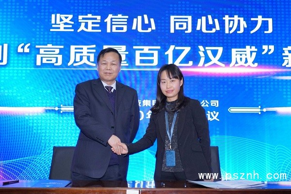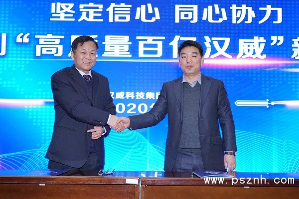 張瀟君總裁與各子公司代表簽訂了2020年目標責(zé)任書,鞭策和激勵各子公司在2020年堅定信心、同心協(xié)力,共同開創(chuàng)“高質(zhì)量百億漢威”新局面。