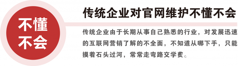 企業(yè)官網(wǎng)是企業(yè)形象的窗口,很多人來了發(fā)現(xiàn)您的窗口是關(guān)閉的,或是展示是農(nóng)耕時代過時的東西,會對企業(yè)好感值下降到零!永遠(yuǎn)沒辦法實現(xiàn)您打造品牌塑造的訴求。 如果企業(yè)的官網(wǎng)始終停流在建網(wǎng)初期,而且老總連自己的后臺進(jìn)入方式也找不到!辛苦建設(shè)平臺成了一個死網(wǎng)站,不但起不到推廣宣傳的作用,反而降低影響公司形象!由內(nèi)及外,如果內(nèi)在得不到革新和維護(hù)最多是宣傳也是緣木求魚。企業(yè)官網(wǎng)維護(hù)好推廣就是事半功倍,相輔相成!說明了不論多少推廣,最終是通過企業(yè)網(wǎng)站這窗口,讓用戶看到企業(yè)的實力和發(fā)展步伐,讓自己的品牌升值!