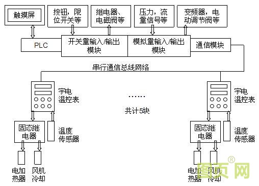 2.2實施方案以及應(yīng)用分析:根據(jù)客戶的要求,為客戶選定的宇電儀表型號是AI-526EGL1S(V8.28),這個儀表型號具有的儀表功能如下,0.25級精度,雙PID,加熱制冷雙輸出,支持雙通訊協(xié)議?;诖藘x表功能,為客戶設(shè)計了PLC配合儀表使用的方案,具體過程如下:系統(tǒng)啟動時,進(jìn)入加熱狀態(tài),溫度傳感器(熱電偶或者熱電阻)檢測到溫度模擬量信號后發(fā)送給儀表,儀表讀取溫度,測量到的實測值與溫度設(shè)定值進(jìn)行比較得到偏差,根據(jù)AI-526內(nèi)置的AI人工智能PID調(diào)節(jié)算法,求得相應(yīng)的控制量去控制固態(tài)繼電器,從而調(diào)節(jié)電加熱器的加熱功率。當(dāng)溫度達(dá)到設(shè)定值時停止加熱,此時,PLC通過485通訊的方式獲得信號,并利用該信號來控制系統(tǒng)的運行狀態(tài)。由于螺桿旋轉(zhuǎn)的剪切會產(chǎn)生摩擦產(chǎn)生的多余熱量,為了避免溫度過高使塑料分解、焦燒或定型困難,當(dāng)溫度過高時,AI-526溫控器的制冷功能起作用,制冷端輸出信號控制風(fēng)冷系統(tǒng)啟動,使溫度下降到設(shè)定值。通過加熱制冷雙輸出的配合控制,形成對于溫度模擬量的閉環(huán)測量和控制,達(dá)到客戶預(yù)想要的溫度。整個系統(tǒng)中例如開關(guān)量的邏輯控制、順序控制和壓力、流量等其他模擬量信號的采集則交給PLC來完成。