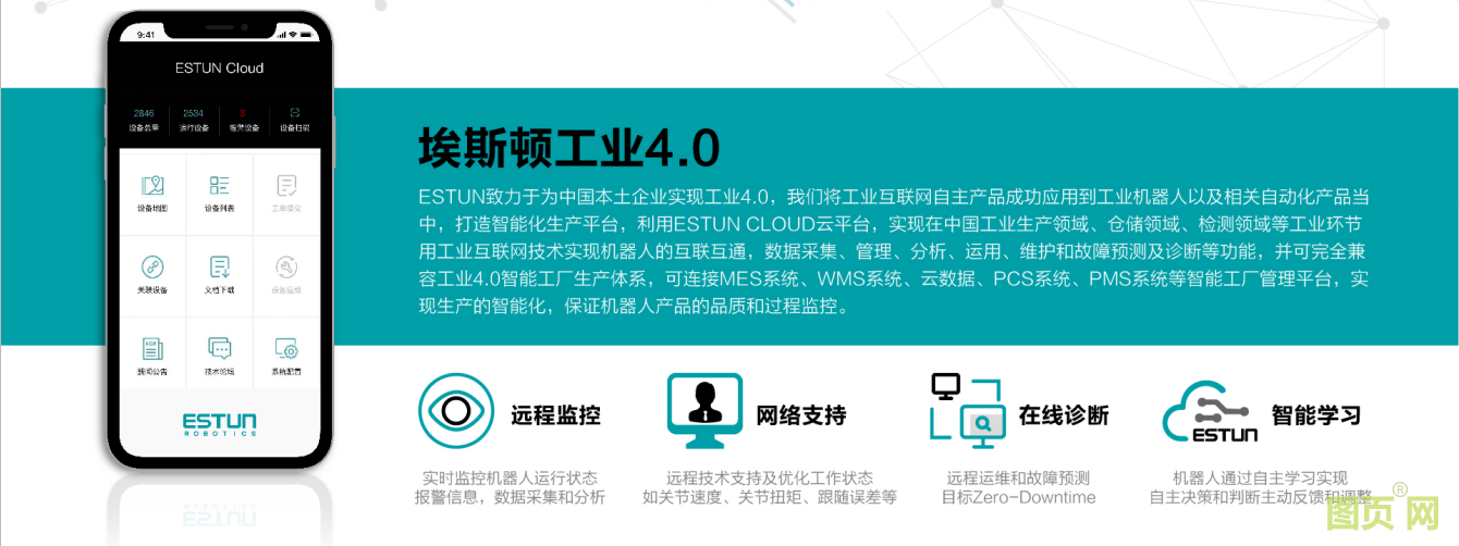 在5G,人工智能,工業(yè)互聯(lián)網(wǎng)賽道中,埃斯頓均進行了超前的布局。Estun Cloud工業(yè)云平臺,為數(shù)字化工廠提供整套信息化解決方案,在遠程監(jiān)控,遠程診斷,智能學(xué)習(xí)方面具有卓越的性能。