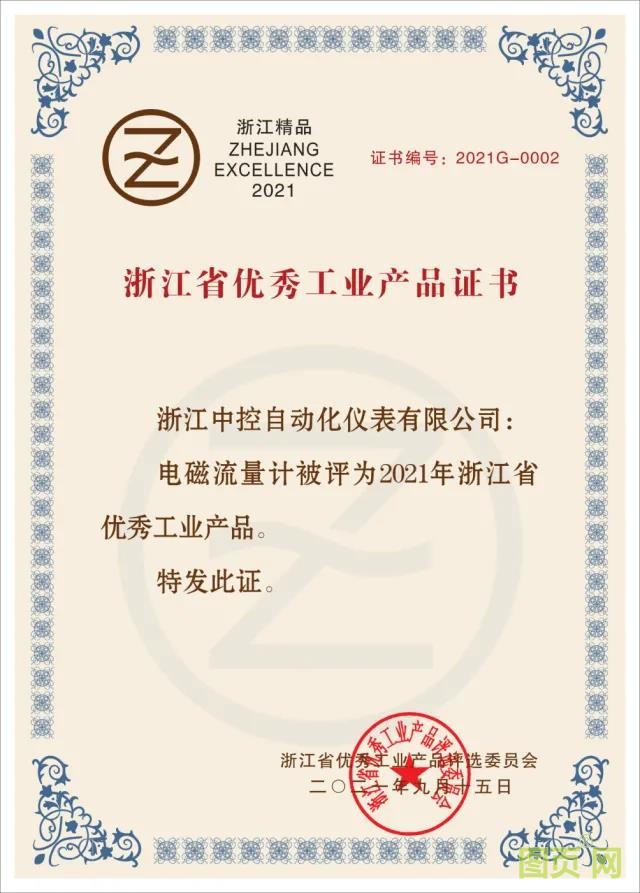 中控電磁流量計獲“浙江省優(yōu)秀工業(yè)產(chǎn)品”證書