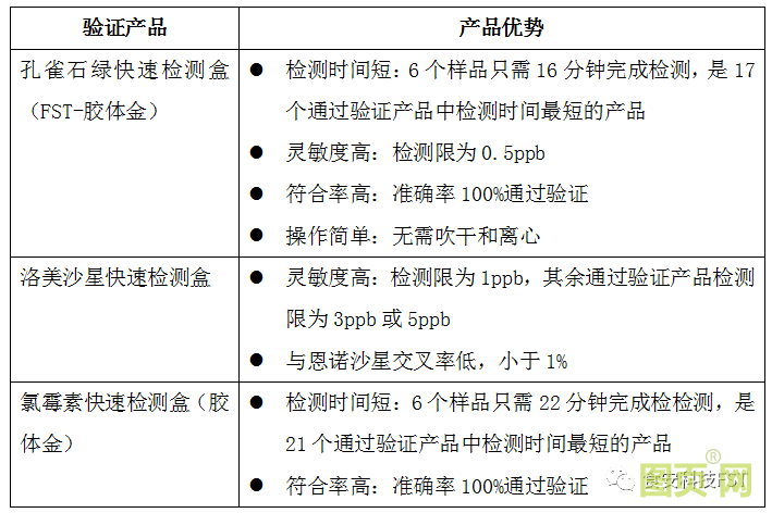 按照評價標(biāo)準(zhǔn),現(xiàn)場驗證結(jié)果是食安科技參與驗證的孔雀石綠快速檢測盒(FST-膠體金)、氯霉素快速檢測盒(膠體金)、呋喃唑酮代謝物快速檢測盒(膠體金)、呋喃西林代謝物快速檢測盒(膠體金)、洛美沙星快速檢測盒符合要求,通過了驗證。