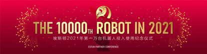 會議期間埃斯頓與蒞臨的各位合作伙伴共同見證:埃斯頓2021年度第一萬臺機器人(ER50B-2100)投入使用。