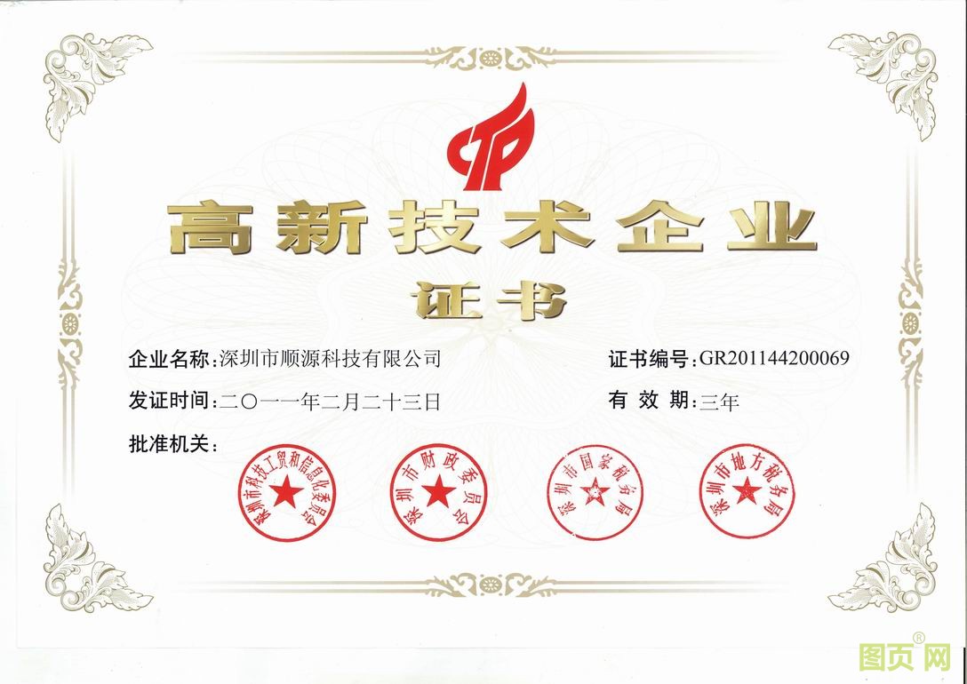 順源科技高新技術(shù)企業(yè)證書(shū)展示