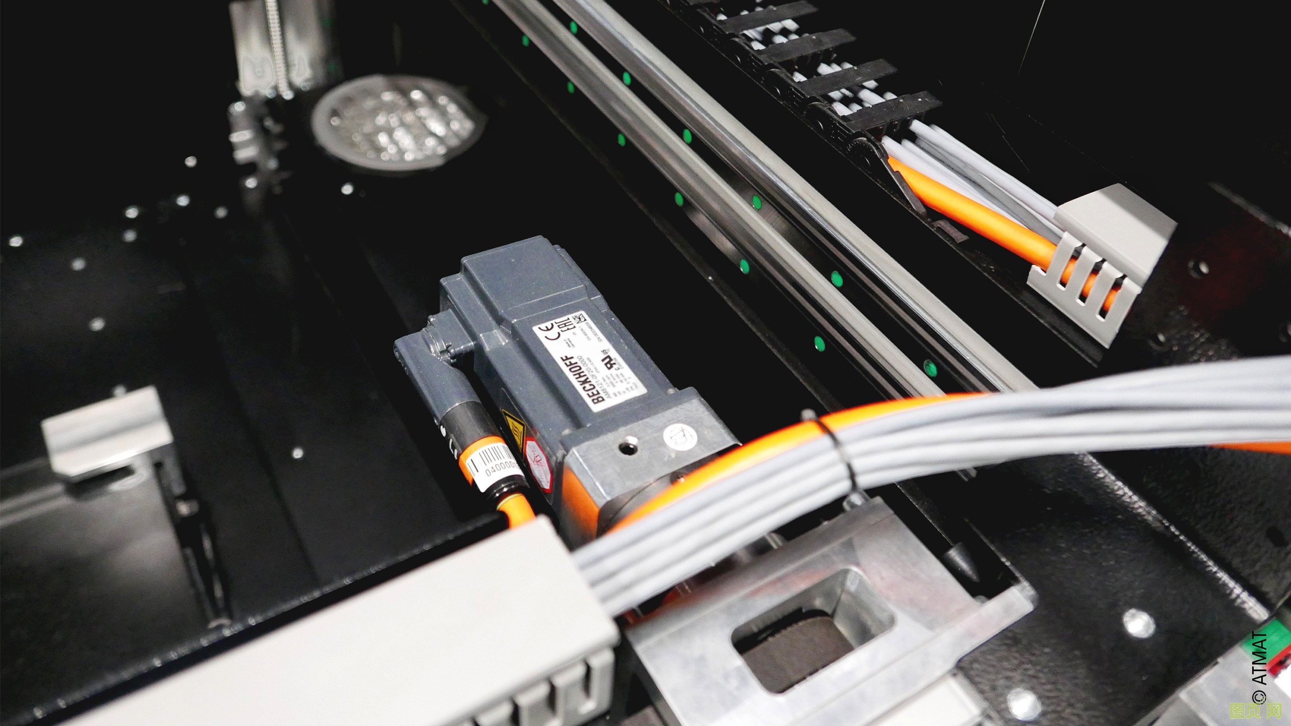 ATMAT 為大幅面打印機(jī)配備了倍福的 AM8121緊湊型伺服電機(jī)。它們與巨大的結(jié)構(gòu)體一起,確保 50 μm(X/Y 軸)和 10 μm(Z 軸)的定位精度。對(duì)于 ATMAT 來說,以前使用 Jupiter 系列積累的積極經(jīng)驗(yàn)對(duì)選擇驅(qū)動(dòng)產(chǎn)品起了決定性作用?!癆M8121緊湊型伺服電機(jī)的其中一個(gè)優(yōu)勢是,它們可以通過 EL72xx 伺服電機(jī)端子模塊驅(qū)動(dòng)?!北陡^(qū)域銷售經(jīng)理 Krzysztof Pulut 說道?!坝捎跇?biāo)準(zhǔn) EtherCAT 端子模塊的體積非常小,與傳統(tǒng)的伺服驅(qū)動(dòng)器相比,它們可以節(jié)省控制柜中的大量空間。此外,單電纜技術(shù)(OCT)將動(dòng)力和反饋系統(tǒng)整合在一根電纜上,大大減少了打印機(jī)的布線工作。OCT 不僅能夠減少布線出錯(cuò)的風(fēng)險(xiǎn),而且還能夠減少設(shè)備制造商需要保留的系統(tǒng)組件數(shù)量?!盳 軸的運(yùn)動(dòng)通過一個(gè)由 EL7031 EtherCAT 端子模塊驅(qū)動(dòng)的步進(jìn)電機(jī)執(zhí)行。
