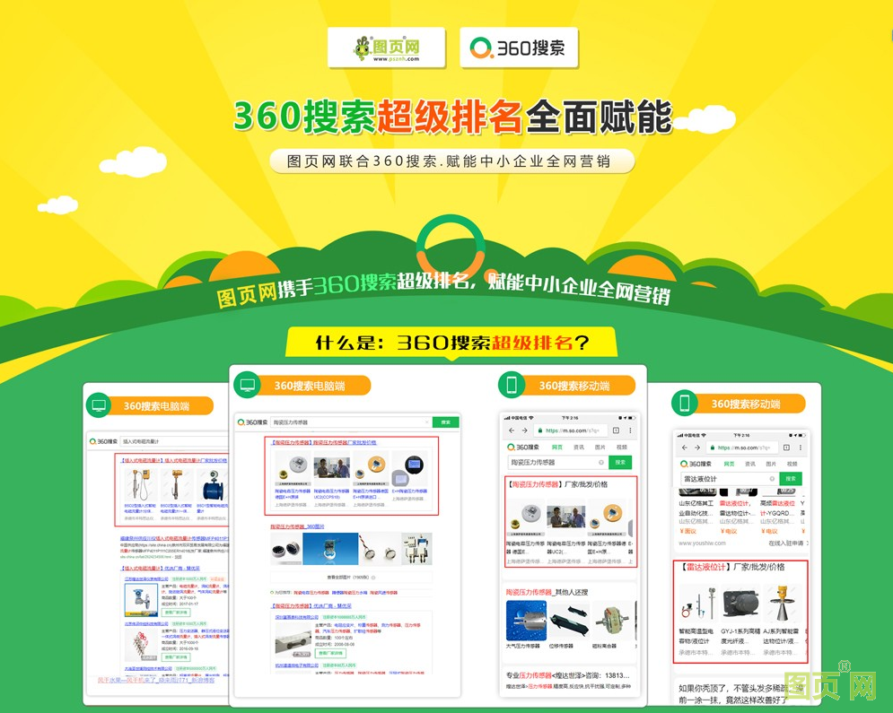 圖頁網(wǎng)賦能中小企業(yè)網(wǎng)絡(luò)營銷推廣,從上傳產(chǎn)品到上線展現(xiàn),我們一對一服務(wù),花一個員工工資,為您在360首頁推廣一年,全天全國獨(dú)霸流量,一個關(guān)鍵詞只做一家企業(yè),先到先得,趕快聯(lián)系我們吧!
