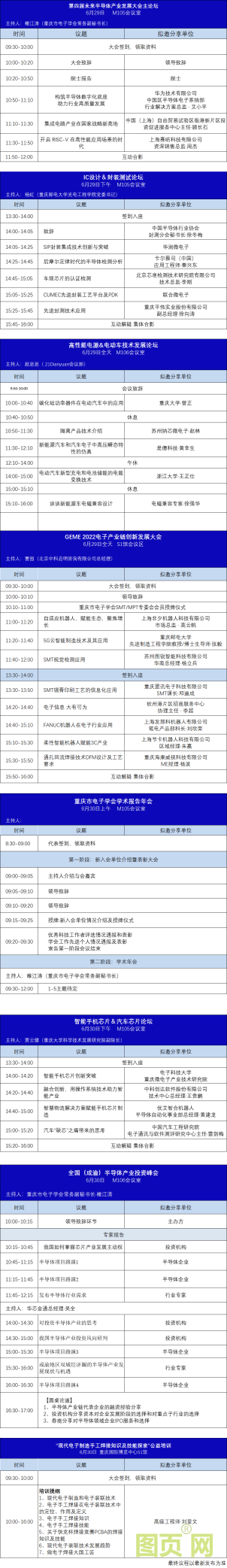 同期將舉辦由重慶經(jīng)開區(qū)?Qualcomm中國(guó)?中科創(chuàng)達(dá)聯(lián)合創(chuàng)新中心聯(lián)合主辦的第四屆未來半導(dǎo)體產(chǎn)業(yè)發(fā)展大會(huì),GEME 2022電子產(chǎn)業(yè)鏈創(chuàng)新發(fā)展大會(huì),由重慶市半導(dǎo)體行業(yè)協(xié)會(huì)與成都電子信息產(chǎn)業(yè)生態(tài)圈聯(lián)盟聯(lián)合主辦的成渝地區(qū)電子信息產(chǎn)業(yè)協(xié)同發(fā)展研討會(huì)。會(huì)議聚焦產(chǎn)業(yè)熱點(diǎn)痛點(diǎn),打造產(chǎn)學(xué)研用一體深度互動(dòng)平臺(tái),構(gòu)建產(chǎn)業(yè)生態(tài)交流長(zhǎng)效機(jī)制。