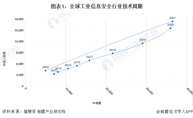 從技術(shù)周期的角度來(lái)看,全球工業(yè)信息安全行業(yè)專(zhuān)利申請(qǐng)人數(shù)量以及專(zhuān)利申請(qǐng)量均呈現(xiàn)增長(zhǎng)態(tài)勢(shì)。整體來(lái)看,全球工業(yè)信息安全行業(yè)技術(shù)處于成長(zhǎng)期。