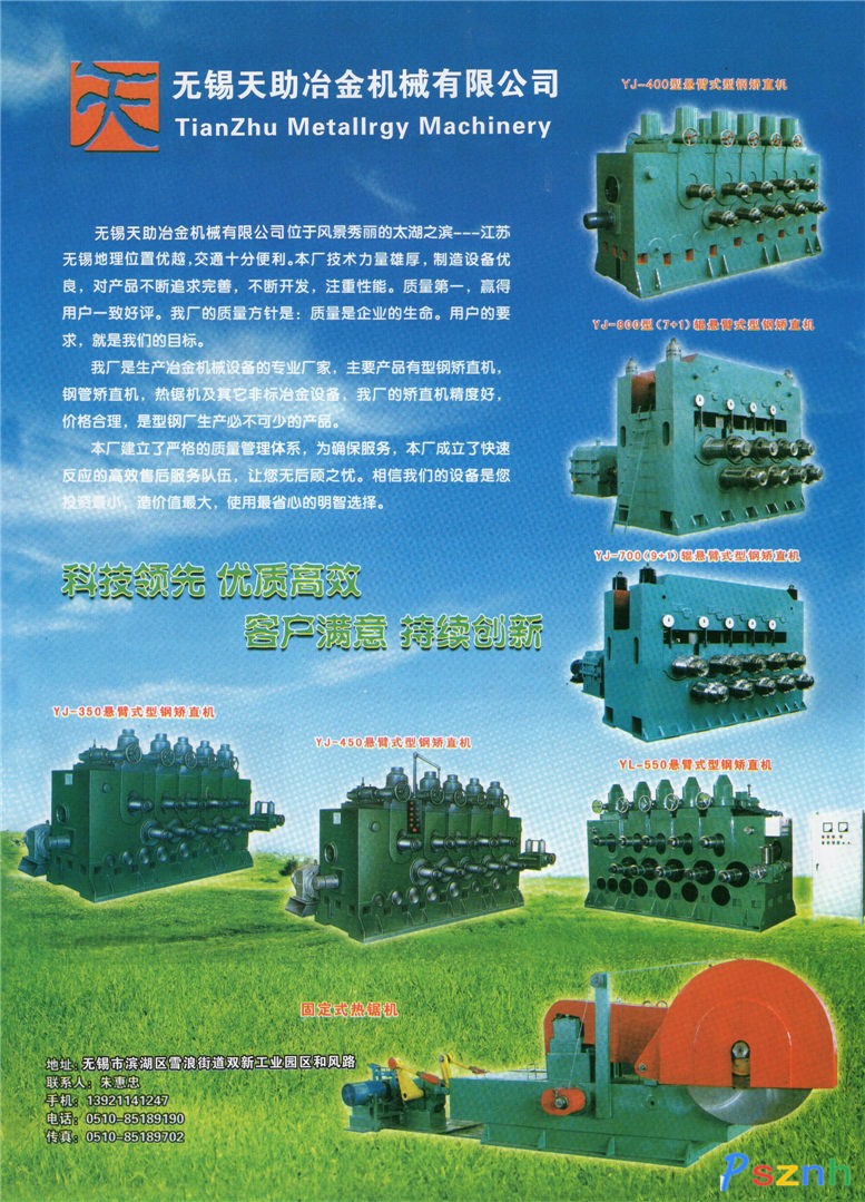 無錫天助冶金機械有限公司_張力減徑機_液壓打頭機_冷拔機_超聲波及渦流探傷機_液壓斷料機_矯直機_穿孔機