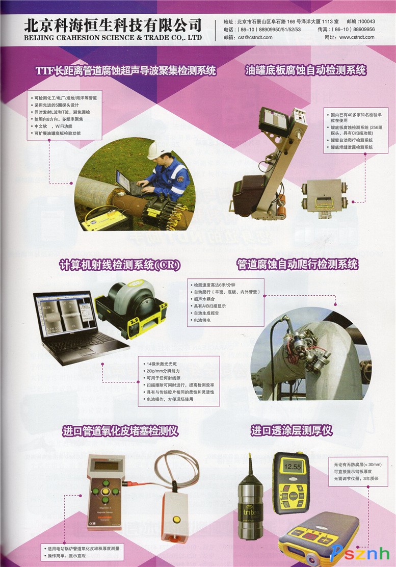 北京科海恒生科技有限公司創(chuàng)建于1999年,位于美麗的北京西山腳下,是國(guó)內(nèi)著名的專業(yè)無(wú)損檢測(cè)設(shè)備生產(chǎn)與銷售公司。其前身是中國(guó)特種設(shè)備檢測(cè)研究院及職工共同出資成立的股份制有限責(zé)任公司,在2002年經(jīng)過(guò)資產(chǎn)重組正式民營(yíng)公司。 隨著公司規(guī)模的擴(kuò)大,我公司已經(jīng)與十幾家世界上著名的無(wú)損檢測(cè)設(shè)備生產(chǎn)廠商建立了良好的長(zhǎng)期合作關(guān)系,先后引進(jìn)了超聲成像、數(shù)字射線成像、聲發(fā)射、漏磁、導(dǎo)波、電梯檢測(cè)、磁記憶等高新技術(shù),使我們的產(chǎn)品幾乎含蓋了無(wú)損檢測(cè)的所有領(lǐng)域。自主研發(fā)產(chǎn)品有:多通道數(shù)字式聲發(fā)射儀及配件、數(shù)字超聲波探傷儀、便攜式里氏硬度計(jì)、鍋爐壓力容器檢驗(yàn)工具箱、機(jī)電類設(shè)備檢驗(yàn)工具箱。 公司的業(yè)務(wù)范圍不僅覆蓋中國(guó)大陸,目前還擴(kuò)展到東南亞一帶,如新加坡、馬來(lái)西亞、巴基斯坦及香港等國(guó)家和地區(qū)。 本公司現(xiàn)為以下廠家及儀器的中國(guó)總代理: 德國(guó)華倫公司全數(shù)字化聲發(fā)射儀器及配件; 英國(guó)銀翼公司貯罐、管道掃描系統(tǒng); 美國(guó)依維森公司射線實(shí)時(shí)成像系統(tǒng); 波蘭匝瓦達(dá) NDT公司鋼絲繩檢測(cè)儀器; 德國(guó)TüV公司數(shù)字化電梯檢測(cè)系統(tǒng); 英國(guó)皮艾公司長(zhǎng)距離管道超聲導(dǎo)波檢測(cè)系統(tǒng); 英國(guó)戴維斯公司鐵素體測(cè)定儀; 韓國(guó)沃泰克公司高精度超聲波測(cè)厚儀; 俄羅斯動(dòng)力診斷公司金屬磁記憶檢測(cè)儀器; 英國(guó)鳳凰公司各類超聲波、渦流掃描器、TOFD探頭; 英國(guó)CIT公司射線計(jì)算機(jī)成像系統(tǒng); 加拿大EP公司埋地管道防腐層檢測(cè)系統(tǒng)。 主要業(yè)務(wù): 公司的業(yè)務(wù)范圍不僅覆蓋中國(guó)大陸,目前還擴(kuò)展到東南亞一帶,如新加坡、馬來(lái)西亞、巴基斯坦及香港等國(guó)家和地區(qū)。 主要應(yīng)用: 壓力容器、管道、橋梁、飛行器、貯罐、復(fù)合材料、水泥及巖石、電器產(chǎn)品放電定位和疲勞測(cè)試的聲發(fā)射檢測(cè); 油罐底板、罐頂、管道腐蝕缺陷漏磁檢測(cè); 鋼絲繩斷絲、腐蝕、磨損缺陷漏磁檢測(cè); 長(zhǎng)距離埋地、水下、架空、跨公路及帶保溫層管道超聲導(dǎo)波腐蝕檢測(cè); 罐壁超聲波自動(dòng)爬行測(cè)厚、B掃描、C掃描檢測(cè); 射線實(shí)時(shí)成像、無(wú)膠片射線計(jì)算機(jī)成像及膠片掃描存檔; 電梯速度、加/減速度、距離、時(shí)間、振動(dòng)、安全鉗、曳引力、平衡、液壓壓力、轎箱質(zhì)量、電梯門閉合力、電梯門撞擊速度、動(dòng)能、電壓、微小位移等參數(shù)檢測(cè); 磁性金屬應(yīng)力集中檢測(cè)、分析; 激光散斑應(yīng)力變形分析; 壓力容器、管道焊縫超聲相控陣、TOFD檢測(cè)。 不銹鋼中的鐵素體含量; 埋地管道防腐層檢測(cè)及評(píng)估。