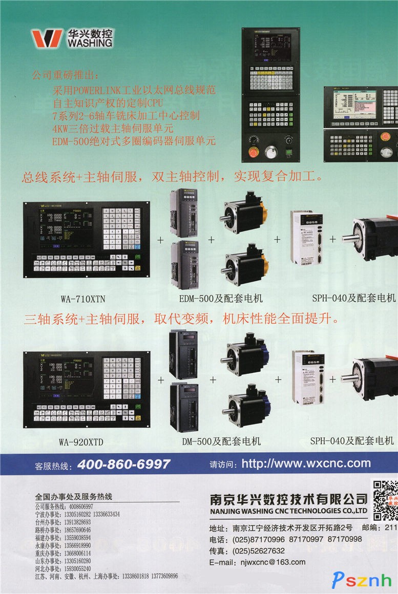 南京華興數(shù)控技術有限公司http://www.wxcnc.com/華興數(shù)控是國內(nèi)主流數(shù)控系統(tǒng)供應商之一,提供從數(shù)控系統(tǒng),交流伺服,主軸伺服,交流伺服電機,主軸伺服電機到隔離功率變壓器的機床全套電控產(chǎn)品,全部產(chǎn)品均自主設計與生產(chǎn),具備極佳的性價比和可靠性。 我公司是國內(nèi)僅有的兩家數(shù)控專業(yè)廠家之一:年產(chǎn)系統(tǒng)過萬套,具備從數(shù)控單元,伺服單元,主軸單元及配套電機全系列產(chǎn)品自主設計生產(chǎn)能力。 經(jīng)過數(shù)年發(fā)展,公司積聚了大批各層次的研發(fā)隊伍,具備豐富的產(chǎn)品開發(fā)應用經(jīng)驗,并擁有多項專利及前沿技術,已在機床,紡織,印染,食品,醫(yī)療等設備的運動控制上產(chǎn)生了廣泛影響,2010年以來年銷售數(shù)控系統(tǒng)3萬~5萬套。 公司擁有SMT貼片生產(chǎn)線,進口電路板全自動光學檢測儀AOI,電機高速沖壓線,電機級進模,全自動浸漆烘干線等完備的生產(chǎn)及檢測設備,年產(chǎn)電路板約20多萬塊,具備年產(chǎn)10萬臺伺服及主軸電機的生產(chǎn)能力。公司二期廠房正在籌建,全部廠房面積達到2.5萬平米。 公司即將推出中大功率永磁同步主軸伺服單元,多軸多通道總線式數(shù)控系統(tǒng),100萬線高分辨永磁同步電機及總線型伺服驅(qū)動器。我公司研發(fā)的POWERlink工業(yè)以太網(wǎng)總線全硬件主從站芯片,遙遙領先與其他同類總線,公司為多軸多通道系統(tǒng)專門刻制的CPU具備奔騰4以上的速度和效率。 “優(yōu)質(zhì)、快速、便捷”是公司對廣大用戶的承諾。公司在全國各地建有十多個服務辦事處,近70名公司員工常駐全國各地,就近為廣大用戶提供最快捷的服務。