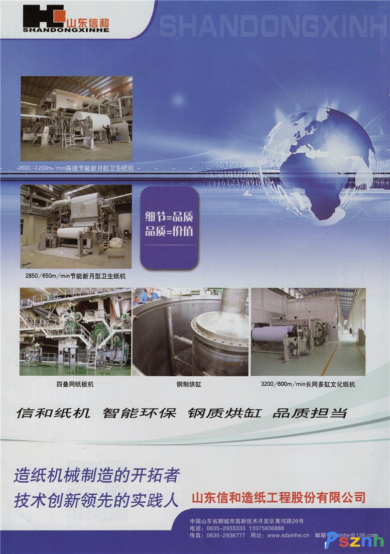 山東信和造紙工程有限公司位于山東省西部有“江北水城”美譽(yù)的聊城市。是集造紙機(jī)械制造、工程安裝調(diào)試、造紙項(xiàng)目總包為一體的專業(yè)服務(wù)于造紙行 業(yè)的綜合性公司。有一批素質(zhì)較高的原國(guó)企員工,有自己的研發(fā)隊(duì)伍,有完備、強(qiáng)大高精度的專業(yè)機(jī)加工能力和焊接能力。公司自成立以來(lái),為幾十家造紙企業(yè)服務(wù) 幾十條生產(chǎn)線,均得到了用戶的好評(píng),為若干紙廠每家單獨(dú)承包了十條以上生產(chǎn)線,并有大量的整條生產(chǎn)線及部件出口到東南亞、西亞、南美等國(guó)家。