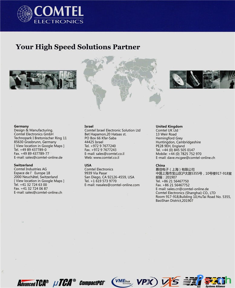 Comtel集團(tuán)的子公司已覆蓋歐洲、美洲以及亞洲,因?yàn)槠渥吭降脑O(shè)計(jì)理念和先進(jìn)技術(shù)的前瞻使其一直在VITA,PICMG等國際協(xié)議標(biāo)準(zhǔn)的定義中扮演重要角色。Comtel集團(tuán)的技術(shù)涵蓋不同的協(xié)議標(biāo)準(zhǔn)并被廣泛應(yīng)用于通信,測量,醫(yī)學(xué),工控,軍工及交通等領(lǐng)域。