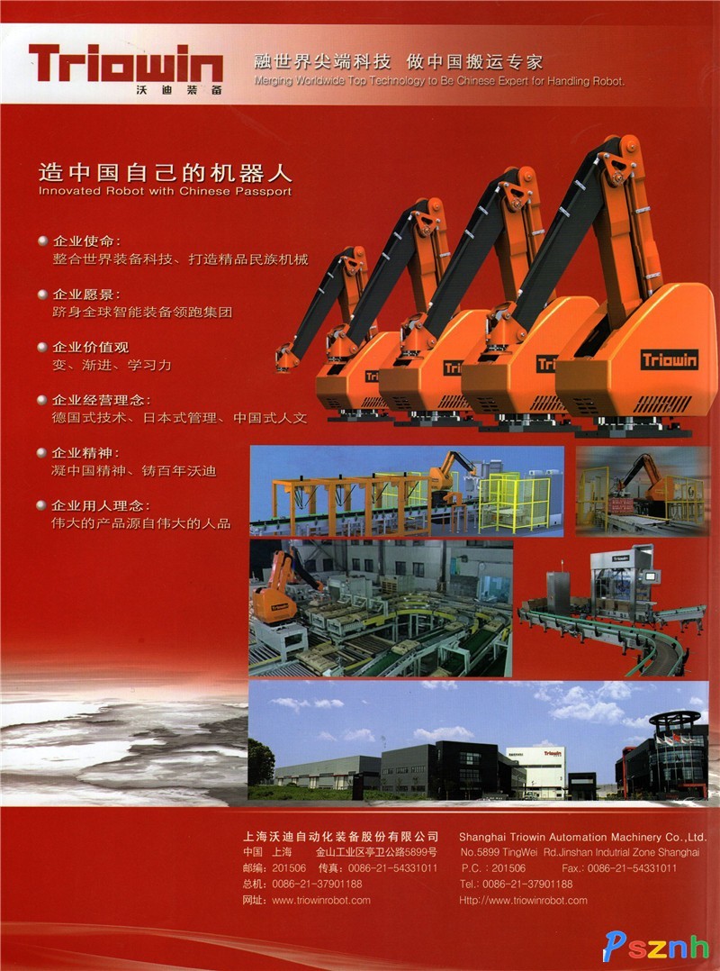 沃迪出品的“TRIOWIN”TPR系列品牌碼垛機(jī)器人經(jīng)中國 科學(xué)院上??萍疾樵冏稍冎行脑u(píng)定:技術(shù)水平達(dá)到國內(nèi)領(lǐng)先、國際先進(jìn)水平。為目前擁有自主知識(shí)產(chǎn)權(quán)的、國內(nèi)最具規(guī)模的國產(chǎn)碼垛機(jī)器人工業(yè)化生產(chǎn)企業(yè)。