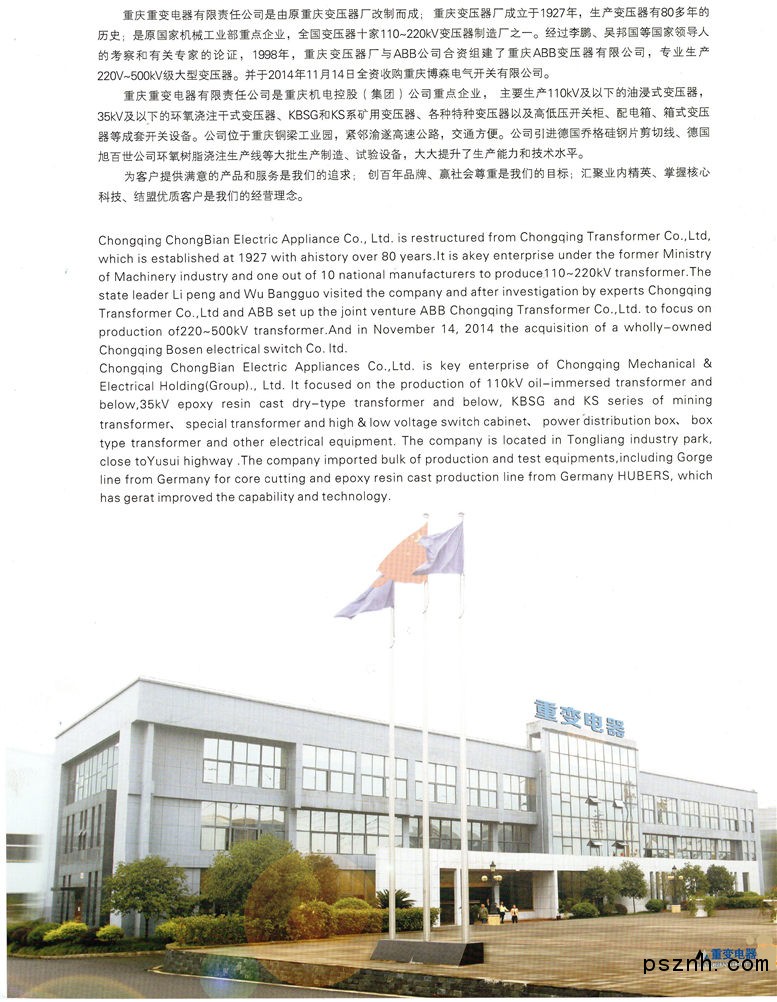 重慶重變電器有限責(zé)任公司 油浸式電力變壓器 環(huán)氧澆注干式變壓器 預(yù)裝式變電站和高低壓成套開關(guān)設(shè)備