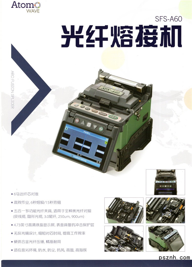 ATOMOWAV光纖熔接機器為電信領(lǐng)域提供更優(yōu)質(zhì)的高度專業(yè)化解決方案。其中,F(xiàn)TTH熱熔解決方案在過去的一年里獲得了行業(yè)多項大獎。ATOMOWAVE專注于光纖熔接、光纖測試技術(shù),SFS系列單芯/SOT系列OTDR,全面覆蓋工程專用機型、FTTH接入網(wǎng)機型、全能機型等,受到韓國KT電信、韓國SK電信、西班牙Telefonica電信、中國電信、中國聯(lián)通、中國移動,以及眾多通信工程公司的一致好評。