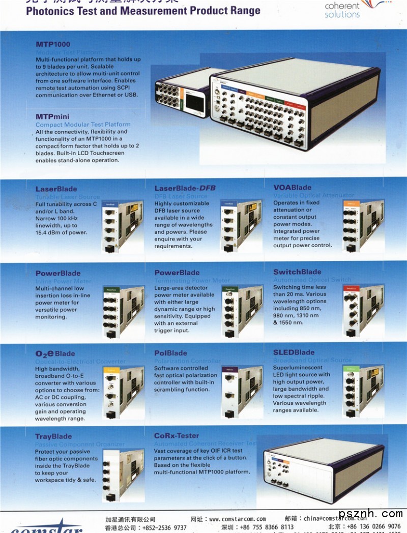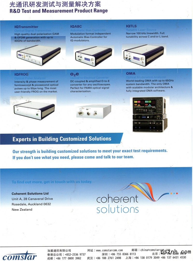 1.光纖通訊應(yīng)用之各種無源及有源器件、模塊。