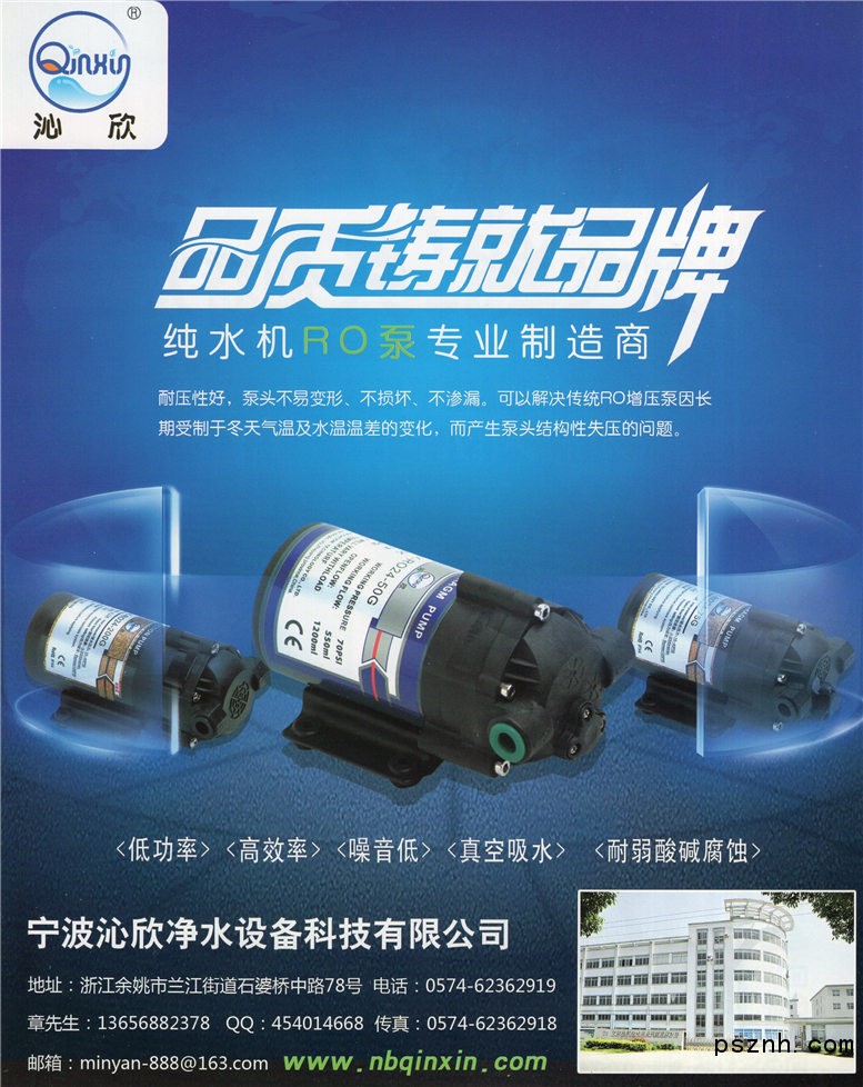 寧波沁欣凈水設備科技有限公司是一家集研發(fā),生產(chǎn)、銷售于一體的科技型企業(yè),公司占地面積達15000平方米,廠房8500平方米,擁有多名技術研發(fā)工程師,公司充分發(fā)揮在技術創(chuàng)新,產(chǎn)品研發(fā)和生產(chǎn)制造等方面的優(yōu)勢,擁有先進的生產(chǎn)設備和嚴格的質(zhì)量管理體系,有多余生產(chǎn)電機產(chǎn)線,專業(yè)生產(chǎn)RO增壓泵,純水機、商用機、超濾機、配件加工等產(chǎn)品,用專注態(tài)度成就專業(yè)品質(zhì)。公司本著“精心管理”不斷創(chuàng)新、科技領先、共享成功、經(jīng)營理念、把市場領先、技術領先、管理領先、作為主要目標、力爭做到,高標準、高質(zhì)量為奮力打拼,創(chuàng)造價值,服務客戶。