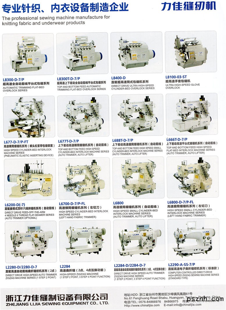 本公司為集縫紉機(jī)鑄造、機(jī)殼加工、涂裝零件加工及裝配全部自動(dòng)化無(wú)區(qū)域的現(xiàn)代化公司。公司還從國(guó)外引進(jìn)了一流生產(chǎn)及檢驗(yàn)設(shè)備。主要生產(chǎn)制造高速電子曲折縫紉機(jī)系列、高速曲折縫紉機(jī)系列、四針六線拼縫機(jī)系列、超高速包縫機(jī)系列、特種繃縫機(jī)系列、電腦高速平縫機(jī)系列、特種機(jī)等80多個(gè)品種的工業(yè)縫紉機(jī)。產(chǎn)品遠(yuǎn)銷30多個(gè)國(guó)家和區(qū)域,并多次榮獲國(guó)家縫紉機(jī)行業(yè)的質(zhì)量?jī)?yōu)秀獎(jiǎng)。