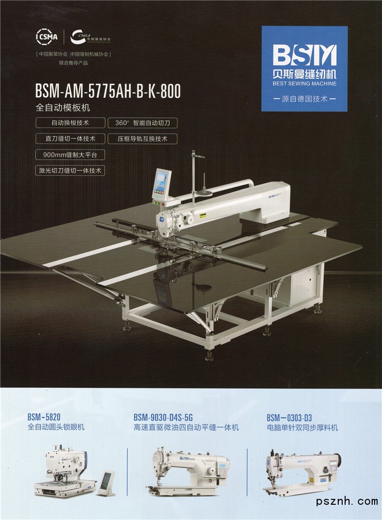 浙江貝斯曼縫紉機(jī)有限公司作為中國縫紉機(jī)行業(yè)的新銳企業(yè),通過引進(jìn)德國技術(shù),專業(yè)生產(chǎn)經(jīng)營“貝斯曼BMS”牌機(jī)電一體化縫制設(shè)備。