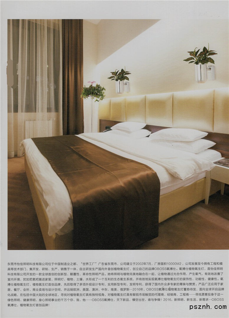 東莞市怡佳照明科技有限公司位于中國制造業(yè)之都、“世界工廠”廣東省東莞市,公司建立于2002年7月,廠房面積10000平方米,公司發(fā)展至今擁有工程和模具等技術(shù)部門,集開發(fā)、研制、生產(chǎn)、銷售于一體,自主研發(fā)生產(chǎn)國內(nèi)外首創(chuàng)植物氧(養(yǎng))生燈,創(chuàng)立自己的品牌OBOSS氧搏仕。氧搏仕植物氧生燈,是怡佳照明公司開發(fā)的一款全球首創(chuàng)的創(chuàng)新型、顛覆性、革命性燈產(chǎn)品。它將燈與植物完美地融合在一起,讓植物通過光合作用,產(chǎn)生氧氣,有效地改善了室內(nèi)的環(huán)境,猶如把氧吧搬進家里,燈、植物、土壤、水形成了一個互利的生態(tài)氧生系統(tǒng),并有效地實現(xiàn)氧搏仕植物氧生燈的裝飾性、功能性、健康性。