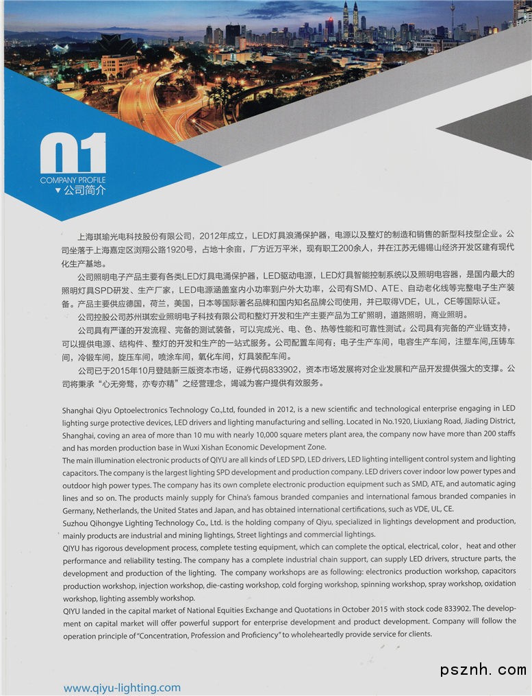 上海琪瑜光電科技股份有限公司是專業(yè)從事照明電子和分布式能源電子產(chǎn)品的開發(fā),制造和銷售的新型科技型企業(yè)。公司坐落于上海嘉定區(qū)瀏翔公路1920號,占地十余畝,廠方近萬平米,并在江蘇無錫錫山經(jīng)濟開發(fā)區(qū)建有現(xiàn)代化生產(chǎn)基地。公司照明電子產(chǎn)品主要有各類LED燈具電涌保護器,LED驅動電源,LED燈具智能控制系統(tǒng)和照明電容器等。產(chǎn)品主要供應德國,荷蘭,美國,日本等國際著名品牌和國內知名品牌公司使用,并已取得VDE,UL,CE等國際認證。公司新能源產(chǎn)品主要致力于開發(fā)儲能和分布式能源的電力電子產(chǎn)品。主要有直流支撐電容器,濾波類電容器,電力機車電容器,高壓儲能脈沖電容器,高比能高壓脈沖電容器和智能化電力電容器,產(chǎn)品涵蓋于光伏,風能,充電樁,電動機車等分布式能源領域,激光裝置和智能電網(wǎng)輸變電設施。公司擁有全套高度自動化的精密制造裝備,其中關鍵裝備由日本,瑞士,意大利,韓國引進。公司已建立自主開發(fā)團隊,配有完善的電子開發(fā)實驗室和高壓實驗室,可以滿足公司各類產(chǎn)品的開發(fā)需要,并可按客戶要求定置開發(fā)產(chǎn)品。公司注重推進產(chǎn)學研合作模式發(fā)展,尤其是在激光脈沖電容器領域,公司與上海交通大學簽訂激光脈沖電容器的產(chǎn)學研協(xié)議,圍繞脈沖電容器關鍵性技術突破和前瞻性產(chǎn)品開發(fā),建設中試和產(chǎn)業(yè)化基地,形成引領行業(yè)創(chuàng)新發(fā)展的核心力量,建設高層次企業(yè)技術創(chuàng)新平臺,輻射帶動相關產(chǎn)業(yè)發(fā)展。公司已于2015年10月登陸新三版資本市場,證券代碼833902,資本市場發(fā)展將對企業(yè)發(fā)展和產(chǎn)品開發(fā)提供強大的支撐。公司將秉承“心無旁騖,亦專亦精”之經(jīng)營理念,竭誠為客戶提供有效服務。