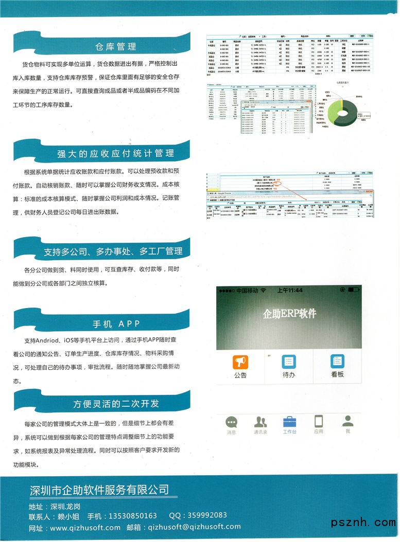 企助五金行業(yè)ERP管理系統(tǒng):該系統(tǒng)由企助軟件自主研發(fā)。根據(jù)我們開發(fā)及實施人員在五金制造行業(yè)多年實際工作經(jīng)驗以及借鑒全球頂尖ERP軟件SAP的先進管理理念、用友軟件的財務(wù)報表嚴(yán)謹(jǐn)性、鼎捷軟件的核心亮點以及MES生產(chǎn)管理系統(tǒng)的特點融合在一起,專門針對塑膠、五金(如螺絲、模具、沖壓類五金、機械等)制造行業(yè)提供全方位的企業(yè)管理解決方案,幫助企業(yè)解決管理難題,提高生產(chǎn)效率。包含有工程管理、模具管理,銷售管理,物料需求(mrp)管理 ,采購管理,委外管理,品質(zhì)管理、生產(chǎn)管理、財務(wù)管理,人事管理等模塊,基礎(chǔ)配置管理,條碼管理,適用于中小型/中大型五金/塑膠企業(yè)管理使用。