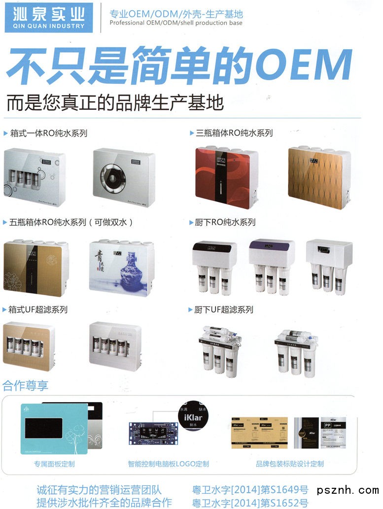 公司成立之初,率先引進國外先進凈水技術,積極吸收改進,接軌國內水質,產品品質廣受客戶贊譽。目前,旗下?lián)碛?ldquo;泉帝”品牌。擁有生產配套基地,具備年產整機800萬臺能力。產品已暢銷全國三十多個省、市、自治區(qū)、分銷商和代理商遍布全國,并連續(xù)多年出口到東南亞市場。