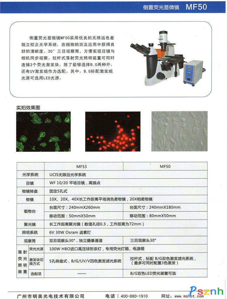 公司主要產(chǎn)品有:專業(yè)級數(shù)碼攝像頭MC55、MC50、MC20、MD55、MD90、MD50;MSHOT數(shù)碼顯微鏡系列;大體標(biāo)本成像儀;體視熒光顯微鏡;顯微鏡相機接口及配件等。產(chǎn)品廣泛應(yīng)用于高校、研究所、企事業(yè)單位實驗室。目前廣州市明美光電技術(shù)有限公司能為國內(nèi)外客戶提供詳細的顯微鏡成像售前咨詢,樣品實測,以及全面的顯微觀測解決方案,同時公司具有完善的售后服務(wù)體系,可以提供及時快捷的顯微數(shù)碼成像產(chǎn)品技術(shù)支持,維修服務(wù)。