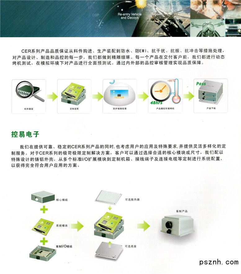 控易電子堅(jiān)持以技術(shù)創(chuàng)新為基礎(chǔ),以客戶服務(wù)為導(dǎo)向,融合國(guó)內(nèi)軍工研究所的開(kāi)發(fā)實(shí)力(中電51所合作單位),開(kāi)發(fā)了基于PC104的CER系列軍用全加固計(jì)算機(jī)平臺(tái),該計(jì)算機(jī)可以實(shí)現(xiàn)IP68的靜態(tài)防水,-40~+85℃的工作溫度,滿足國(guó)軍標(biāo)的沖擊,振動(dòng),復(fù)雜電磁環(huán)境等要求,同時(shí)具有擴(kuò)展方便等特性, CER全加固系列還包含同等級(jí)的全加固顯示器和全加固鍵盤(pán)鼠標(biāo), 是嚴(yán)苛環(huán)境下的計(jì)算機(jī)首先平臺(tái),該系列產(chǎn)品已經(jīng)獲得相關(guān)國(guó)軍標(biāo)的實(shí)驗(yàn)認(rèn)證.經(jīng)過(guò)控易電子全體同仁的共同努力,公司已經(jīng)獲得ISO-9001:2000的質(zhì)量體系認(rèn)證,為更好的服務(wù)廣大客戶提供更多的保障.