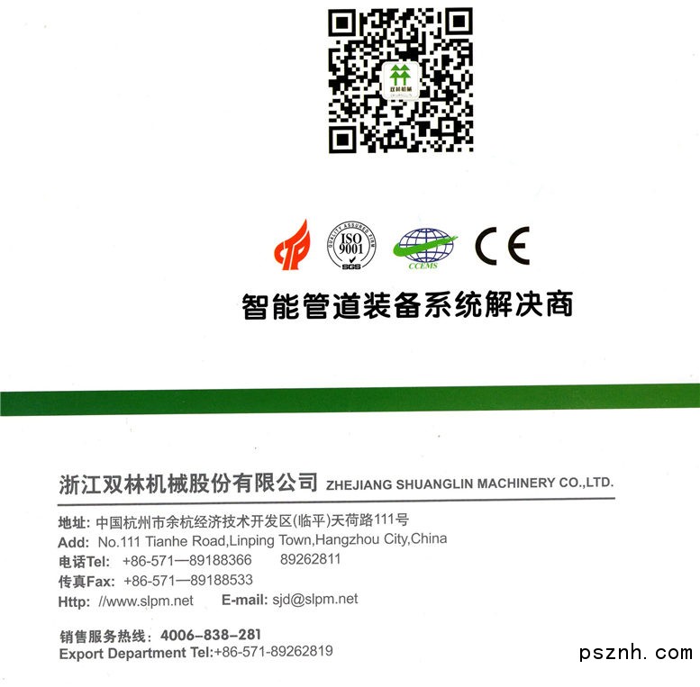 浙江雙林機(jī)械股份有限公司(股票代碼:832111)是專業(yè)塑料管道成套設(shè)備制造商、 智慧地下管網(wǎng)系統(tǒng)服務(wù)商。公司成立于1991年,現(xiàn)旗下有2個生產(chǎn)基地(余杭、德清), 職工400余人,專業(yè)技術(shù)人員100余人。企業(yè)技術(shù)中心于2008年被評為杭州市級技術(shù)研發(fā)中心, 2013年獲塑料管道制造裝備“浙江省工程研究中心”。與浙江大學(xué)長期合作、與浙江工業(yè)大學(xué)共 建了工程研發(fā)中心。截止到2014年12月,獲得國家專利120余項,其中發(fā)明專利16項。并承擔(dān)了 多項國家火炬計劃項目。雙林品牌先后被認(rèn)定為“浙江省著名商標(biāo)”、“中國馳名商標(biāo)”。二十年 來,雙林機(jī)械通過對管道設(shè)備的產(chǎn)、研、銷的積淀,始終保持在我國塑料管道機(jī)械細(xì)分領(lǐng)域前 三。在國內(nèi),有80%以上的知名管道生產(chǎn)商均為我公司客戶。2015年3月6日在全國中小企業(yè)股份 轉(zhuǎn)讓系統(tǒng)(新三板)掛牌上市(股票簡稱:雙林機(jī)械;股票代碼:832111)。成為新三板國內(nèi) 首家塑料管道設(shè)備、治水治污設(shè)備掛牌上市公司。