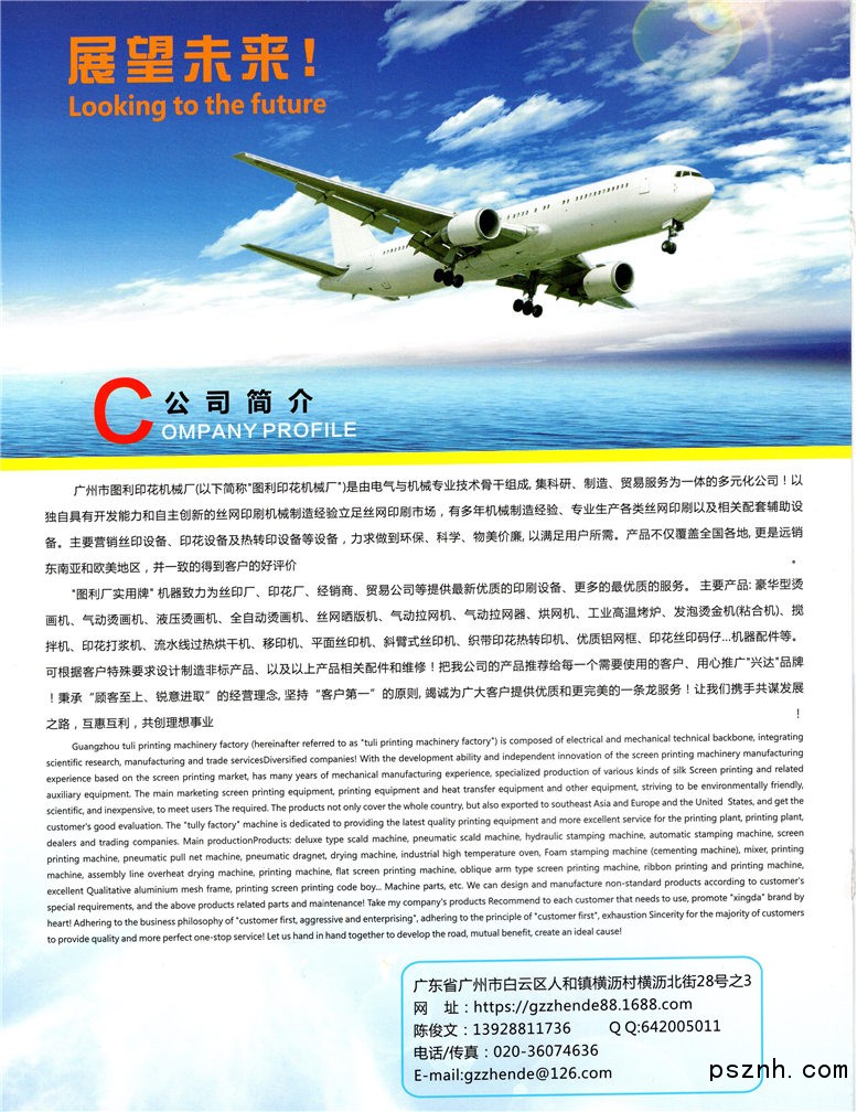 廣州市圖利印花設(shè)備有限公司是燙畫機(jī)、熱轉(zhuǎn)印機(jī)、曬版機(jī)、拉網(wǎng)機(jī)、絲印機(jī)、氣動(dòng)雙工位燙畫機(jī)、高壓力燙畫機(jī)、平板燙畫機(jī)、液壓雙工位燙畫機(jī)、全自動(dòng)燙畫機(jī)、燙帽機(jī)等產(chǎn)品專業(yè)生產(chǎn)加工的公司,擁有完整、科學(xué)的質(zhì)量管理體系。廣州市興達(dá)印花機(jī)械廠的誠(chéng)信、實(shí)力和產(chǎn)品質(zhì)量獲得業(yè)界的認(rèn)可。歡迎各界朋友蒞臨參觀、指導(dǎo)和業(yè)務(wù)洽談。