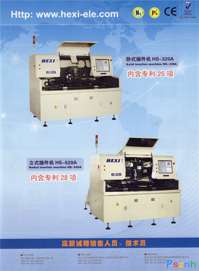 深圳市和西智能裝備股份有限公司成立于1999— 中國大陸實力雄厚的電子設備制造廠家之一.公司專業(yè)設計生產及經(jīng)營各式全自動插件機,無鉛波峰焊錫機,無鉛回流焊錫機,AOI光學檢測儀及SMT周邊設備。