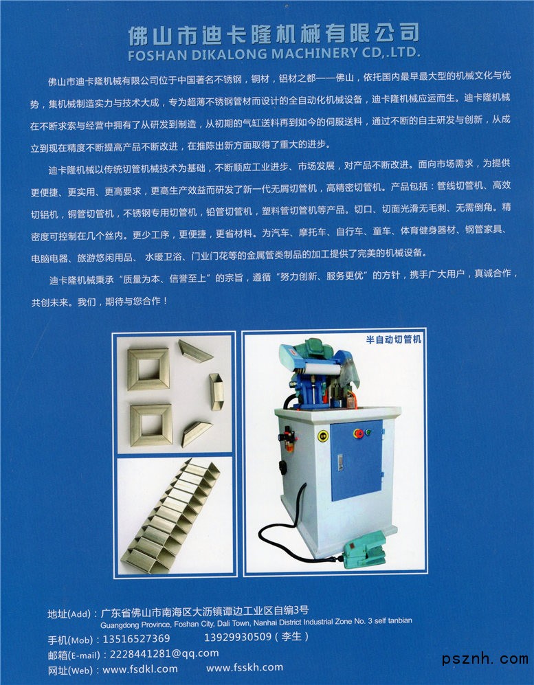 佛山市迪卡隆機(jī)械有限公司 管線切管機(jī)_高效切鋁機(jī)_銅管切管機(jī)