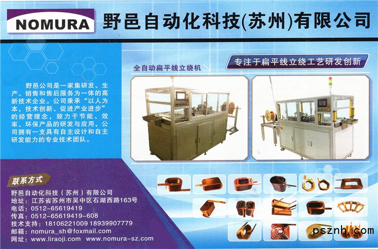 野邑機電科技公司主要生產(chǎn)設備包括:箔繞機、繞線機、變壓器箔式繞線機、電抗器箔式繞線機、高壓箔繞機、電抗器、變壓器繞線機,自動排線繞線機,非晶器身裝配臺、器身翻轉臺等變壓器、數(shù)控立繞機、層絕緣折邊機、非晶合金帶材剪切線、高低壓繞線機、張力放線架、電抗器配套設備。近幾年隨著公司與法國PECHINEY、瑞士SCHLATTER公司、日本東電公司成功進行戰(zhàn)略合作,以及公司自主研發(fā)的國內(nèi)首臺扁平線立繞機成功實現(xiàn)商業(yè)化運行,公司迎來了難得的歷史發(fā)展機遇,也得到了國內(nèi)外多家知名投資機構青睞,現(xiàn)已啟動集團化運營模式準備工作。面對廣闊的行業(yè)發(fā)展前景,公司將充分發(fā)揮多年積累的技術、設備優(yōu)勢,努力搶占電力、航空設備產(chǎn)業(yè)發(fā)展的戰(zhàn)略機遇,力爭用10年左右的時間發(fā)展成為國內(nèi)一流、國際知名電力、航空設備生產(chǎn)制造企業(yè)。
