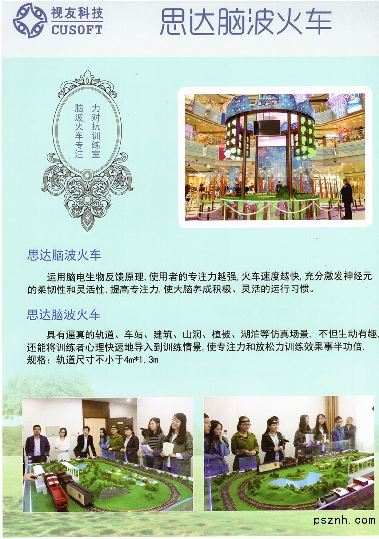 北京視友科技是國內(nèi)最早進(jìn)入可穿戴腦電應(yīng)用領(lǐng)域的創(chuàng)新型公司,并且率先成功地將腦電技術(shù)進(jìn)行產(chǎn)業(yè)化。公司現(xiàn)已發(fā)展成為一家專業(yè)從事可穿戴腦電儀、智能腦電外設(shè)、大腦健康系統(tǒng)、腦電及認(rèn)知云服務(wù)平臺、腦電生物反饋等產(chǎn)品的研發(fā)、生產(chǎn)及銷售的企業(yè)。截至2015年底,公司已獲取5項專利和22項軟件著作權(quán)。公司自行研發(fā)的MindXP訓(xùn)練系統(tǒng)、CUBand腦電儀、佰意通、邁思睿、思語腦波燈、思速腦波賽車、思達(dá)腦波火車等系列產(chǎn)品,已大規(guī)模應(yīng)用于近5000所學(xué)校、政府機(jī)關(guān)、公檢法、企業(yè)等單位的腦素質(zhì)、腦健康、心理健康的評估和訓(xùn)練,在可穿戴腦電及腦科學(xué)應(yīng)用市場占據(jù)領(lǐng)先地位。