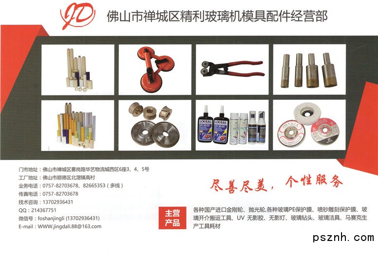佛山市禪城區(qū)博大玻璃機(jī)械配件供應(yīng)站是國(guó)內(nèi)首家大型的進(jìn)口、國(guó)產(chǎn)玻璃磨輪、玻璃工具產(chǎn)品的供應(yīng)商,商品的產(chǎn)地包括有意大利、英國(guó)、西德、日本、韓國(guó)、臺(tái)灣和國(guó)內(nèi)等品牌廠家,品種繁多,規(guī)格齊全,能滿足玻璃行業(yè)制造、加工廠商和消費(fèi)者的不同需求。 公司自一九九六年開(kāi)業(yè)以來(lái),不斷開(kāi)拓新市場(chǎng),除經(jīng)銷國(guó)外不同牌子的磨輪、機(jī)械和工具外,還與各廠家建立聯(lián)營(yíng)網(wǎng)絡(luò),按客戶的來(lái)樣訂造特殊規(guī)格的磨輪、機(jī)械和工具,并提供省內(nèi)送貨上門,省外還透過(guò)不同的途徑送到客戶手中的服務(wù)。長(zhǎng)年為客戶的磨輪、機(jī)械和工具使用提供咨詢服務(wù),本著"用戶至上,物美價(jià)廉"的宗旨,竭誠(chéng)為廣大用戶服務(wù),愿與各企業(yè)廠家攜手共進(jìn),互惠互利。