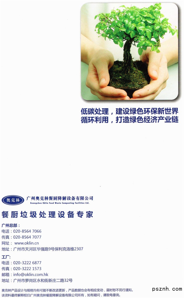 公司不斷努力創(chuàng)新,擴(kuò)大產(chǎn)品服務(wù)范圍,于2011年在中國廣州永和開發(fā)區(qū)成立國內(nèi)基地,集研發(fā)、生產(chǎn)和經(jīng)營于一體,生產(chǎn)不同規(guī)格型號餐廚降解設(shè)備,從適合于家庭使用至大型商業(yè)場所及市政環(huán)衛(wèi)用途系列,提供餐廚垃圾處理方案,建立綠色循環(huán)經(jīng)濟(jì),創(chuàng)建源頭處理餐廚垃圾運(yùn)作模式,實(shí)現(xiàn)餐廚垃圾處理的減量化、無害化、資源化目標(biāo)!
