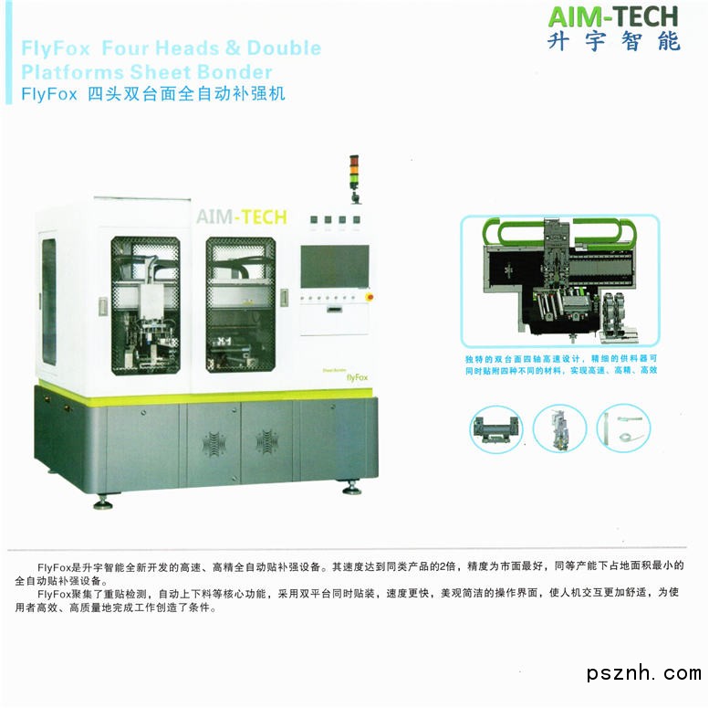 AIM自2013年推出FPC領(lǐng)域第一款產(chǎn)品:ST3000B自動(dòng)貼PI補(bǔ)強(qiáng)機(jī)后,在行業(yè)市場(chǎng)上掀起了新一起浪潮,升宇智能正式登上了FPC行業(yè)系列化貼補(bǔ)強(qiáng)機(jī)的舞臺(tái)。為了響應(yīng)業(yè)內(nèi)需求,我們不斷創(chuàng)造、創(chuàng)新和創(chuàng)想,自主研發(fā)的產(chǎn)品基本全輻射FPC后制程、SMT后貼附材料的產(chǎn)品線,獲得了行業(yè)眾多用戶的肯定以及好評(píng),有效解決了行業(yè)用戶的成本浪費(fèi)、效率過低等根本問題。