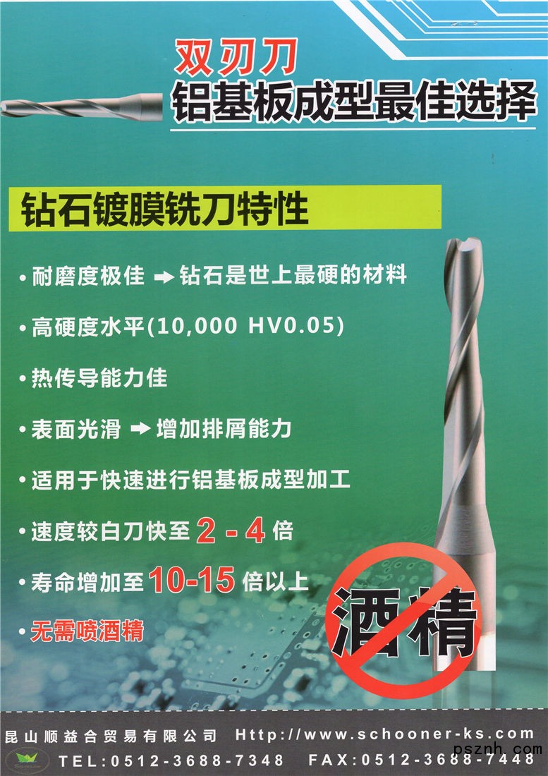 而High Tg、無鹵素、HDI、陶瓷基板、鋁基板、銅基板等,此類高硬度基板及金屬基板因其硬度較高,導(dǎo)致加工困難,為了解決此類高硬基材加工問題,各類PCB銑刀因應(yīng)而生,進(jìn)而開發(fā)出High Tg專用銑刀、無鹵素專用銑刀、HDI專用銑刀、陶瓷基板專用銑刀、鋁基板用銑刀等各種專用銑刀之白刀刀型,但還是會(huì)因高磨耗,而造成刀具壽命短能加工的米數(shù)短,換刀頻繁,及庫存量增加等問題。