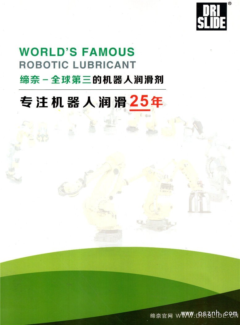 DriSlide公司成立于1993年,專注工業(yè)機(jī)器人油脂的研發(fā)生產(chǎn)、以綠色環(huán)保節(jié)能的理念立足于世,為客戶節(jié)省時間和成本,讓機(jī)器設(shè)備得到更好的潤滑是我們企業(yè)發(fā)展的理念。我們服務(wù)于世界各地的客戶,我們把潤滑油脂安全地銷往全球,Dri-Slide滑動潤滑劑可以節(jié)省你的錢,因為你不像使用其他潤滑劑那樣經(jīng)常使用潤滑油,而且你不必像其他潤滑油那樣使用那么多的潤滑液。