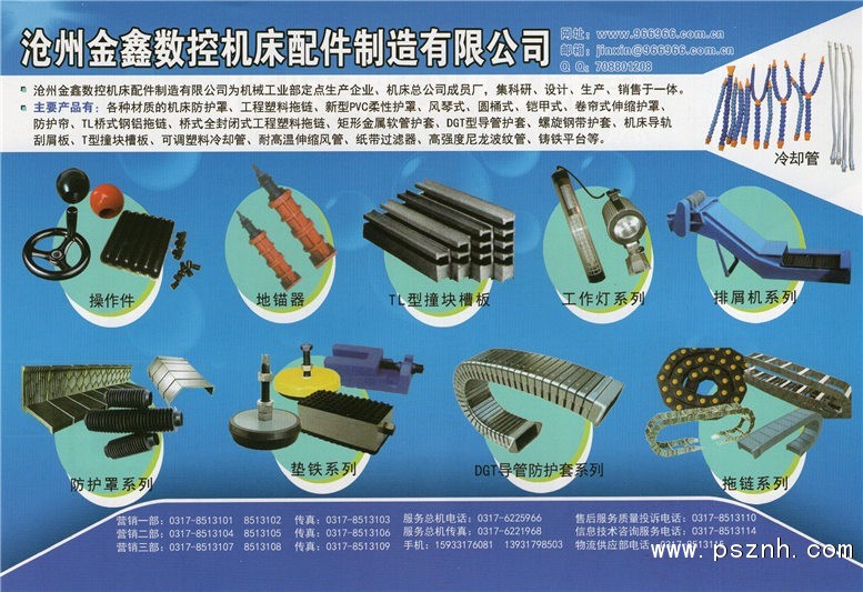滄州金鑫數(shù)控機(jī)床配件制造有限公司為機(jī)械工業(yè)部定點(diǎn)生產(chǎn)企業(yè)、機(jī)床總公司成員廠,集科研、設(shè)計(jì)、生產(chǎn)、銷售于一體,是機(jī)床附件、防護(hù)裝置生產(chǎn)歷史較早、專業(yè)性強(qiáng)、技術(shù)力量雄厚,在國內(nèi)同行業(yè)規(guī)模較在的企業(yè)之一。我公司依靠科技開發(fā)產(chǎn)品,使企業(yè)充滿活力,用戶遍布全國各地及國外,本公司產(chǎn)品保用一年,質(zhì)量三包,終身維修,免費(fèi)咨詢。我們致力于開拓創(chuàng)新,不斷改造完善,為用戶提供最好,更新的現(xiàn)代化產(chǎn)品,并通過完善的產(chǎn)品服務(wù)來滿足您的愿望和要求。