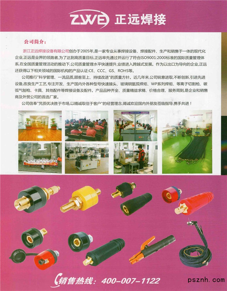 正遠(yuǎn)焊接擁有現(xiàn)代化的生產(chǎn)設(shè)備與一批高素質(zhì)的專業(yè)工程師、技術(shù)力量雄厚。多年來,專業(yè)開發(fā)、生產(chǎn)國內(nèi)外各種型號(hào)快速接頭、玻璃鋼氬弧焊炬、WP系列焊炬、等離子切割槍、碳弧氣刨槍、卡具、其他配件等焊接設(shè)備及配件。產(chǎn)品品種齊全、質(zhì)量精益求精、價(jià)格合理、服務(wù)周到,是企業(yè)和銷售商及外貿(mào)公司的首選廠家。