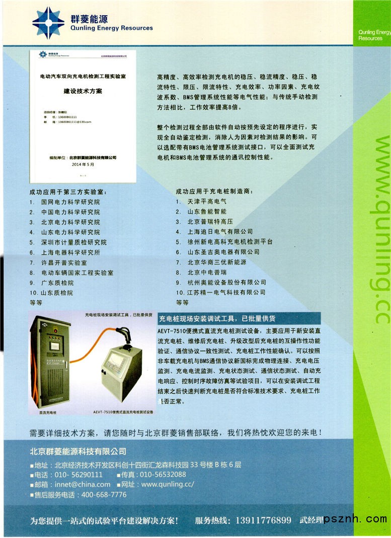 北京群菱能源科技有限公司,專業(yè)致力于電動(dòng)汽車充電站檢測及系統(tǒng)集成、新能源檢測及系統(tǒng)集成、電源測試設(shè)備研發(fā)與制造的高科技生產(chǎn)型企業(yè),公司注冊資金10888萬。北京群菱現(xiàn)有35項(xiàng)發(fā)明專利及7項(xiàng)軟件著作權(quán),通過“高新技術(shù)企業(yè)”認(rèn)證。公司參與充電樁檢測、光伏并網(wǎng)檢測等23項(xiàng)相關(guān)標(biāo)準(zhǔn)的起草,是中國充電樁檢測標(biāo)準(zhǔn)制定的重要參與單位。