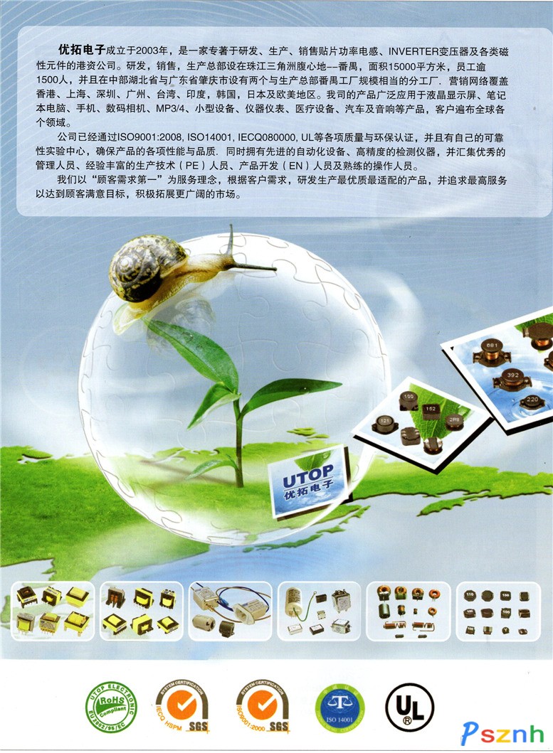 優(yōu)拓電子(廣州)有限公司成立于2003年,是一家專著于研發(fā)、生產(chǎn)、銷售貼片功率電感、INVERTER變壓器及各類磁性元件的港資公司。研發(fā),銷售,生產(chǎn)總部設(shè)在珠江三角洲腹心地--番禺,面積15000平方米,員工逾1500人,并且在中部湖北省設(shè)有與生產(chǎn)總部番禺工廠規(guī)模相當?shù)姆止S.營銷網(wǎng)絡(luò)覆蓋香港、上海、深圳、廣州、臺灣、印度,韓國,日本及歐美地區(qū)。我司的產(chǎn)品廣泛應(yīng)用于液晶顯示屏、筆記本電腦、手機、數(shù)碼相機、MP3/4、小型設(shè)備、儀器儀表、醫(yī)療設(shè)備、汽車及音響等產(chǎn)品,客戶遍布全球各個領(lǐng)域。